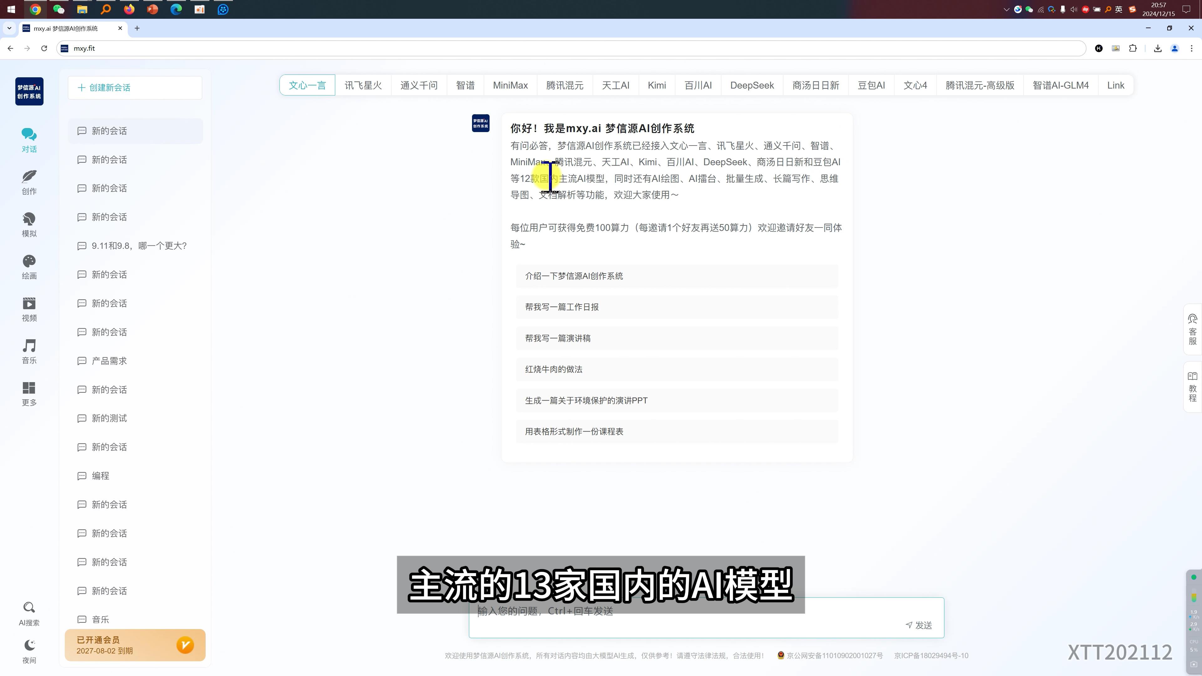 它主要的一个优势就是集成了文心一言、讯飞星火、通义千问、智谱、Minimax、腾讯混元、天工AI、Kimi、百川AI、以及商汤日日新、豆包AI、文心4等等主流的13家国内的AI模型