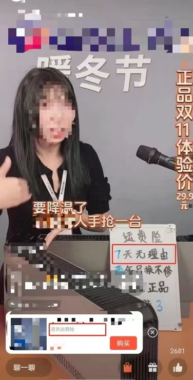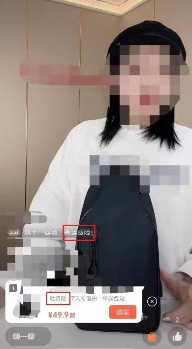 直播间公屏宣传赠送“运费险”,且商品有“运费险”服务 | 直播背景板宣传赠送“运费险”,但相应的商品无“运费险”服务 | |