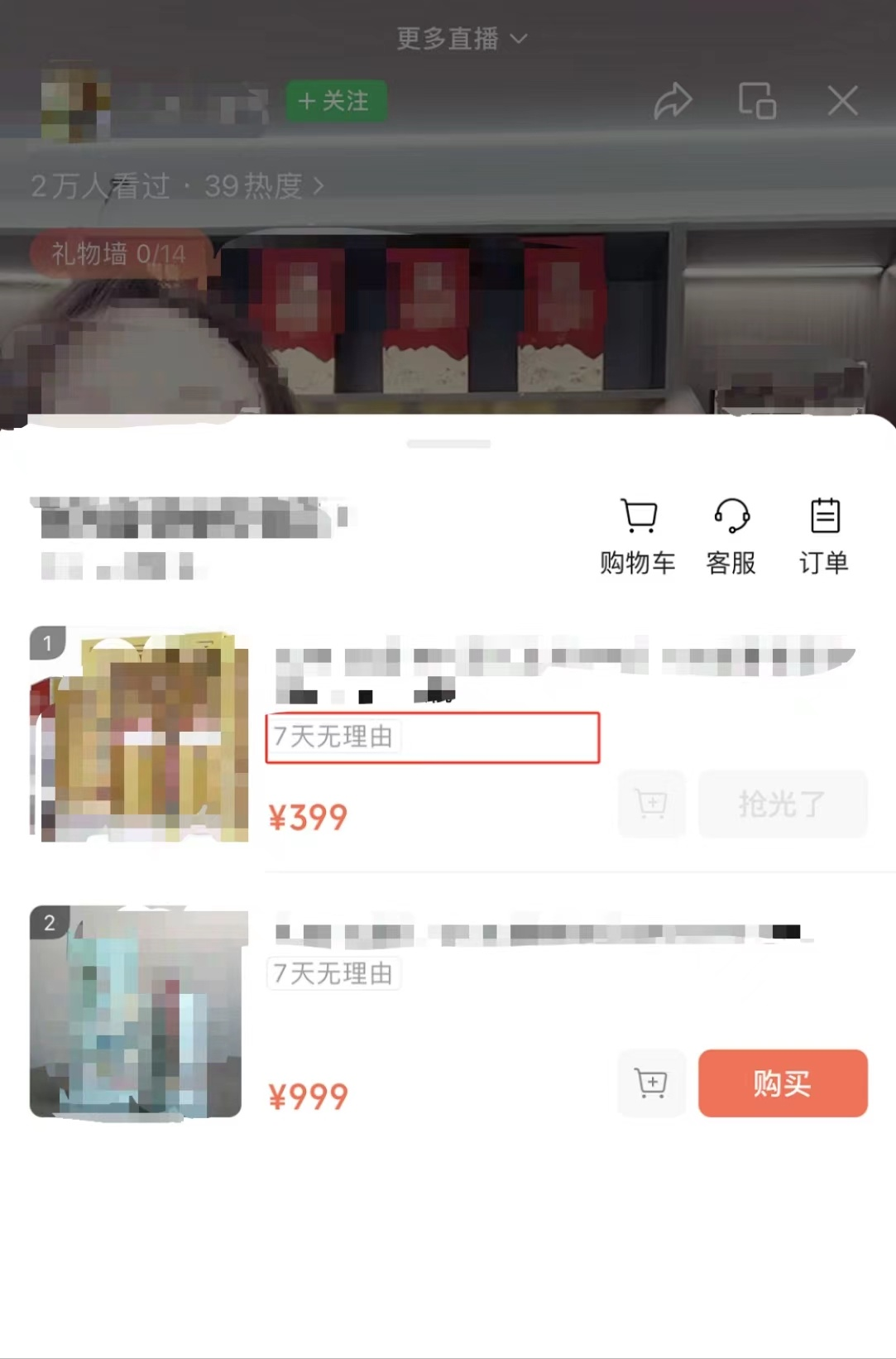 直播手举展示牌宣传“7天无理由”,且商品有“7天无理由”服务 | 直播展示牌宣传“7天无理由”,但相应的商品无“7天无理由”服务 |