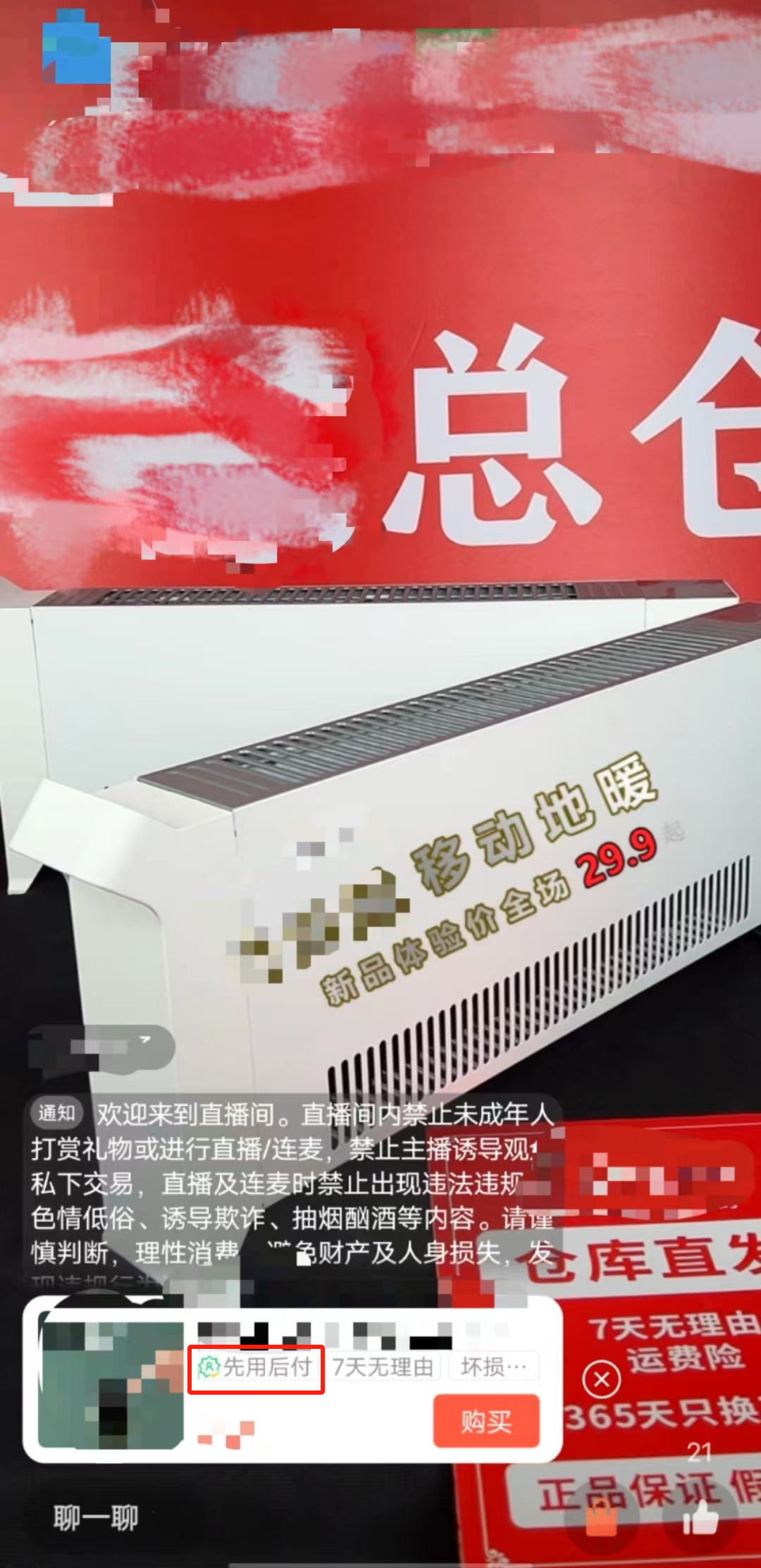 直播口播宣传“先用后付”,且商品有“先用后付”服务 | 直播口播宣传“先用后付”,但相应的商品无“先用后付”服务 |