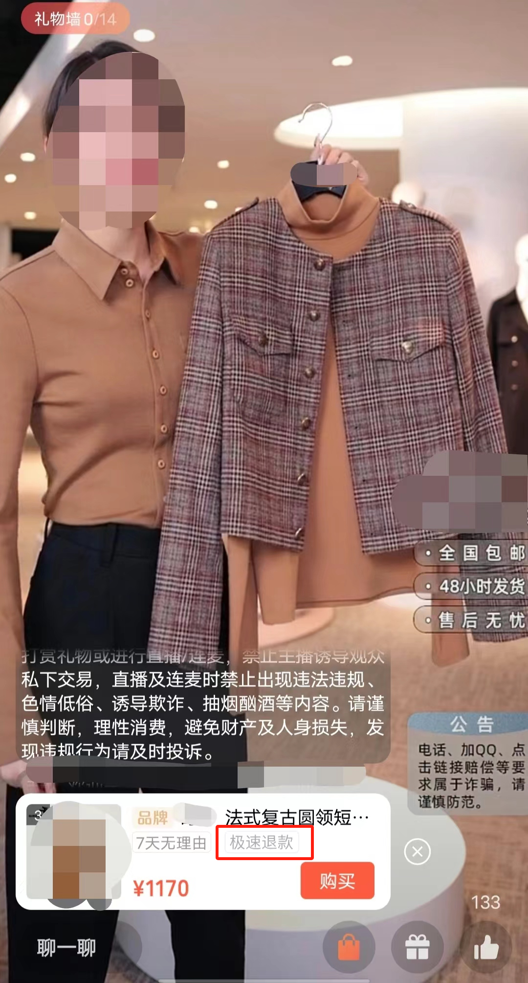 直播口播宣传“极速退款”,且商品有“极速退款”服务 | 直播口播宣传“极速退款”,但商品无“极速退款”服务 |
